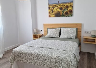- Habitación principal con cama de 150 cm y colchón Pikolin con doble firmeza.